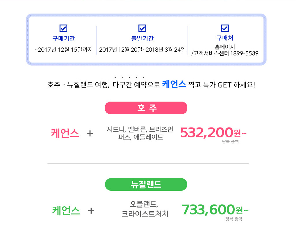 예) 서울 ~ 호주 / 케언스 ~ 서울, 서울 ~ 케언스 / 뉴질랜드 ~ 서울