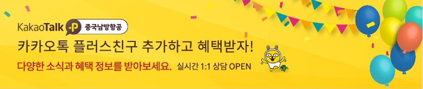 - 자세한 사항은 중국남방항공 고객서비스센터 1899-5539 또는 가까운 여행사로 문의 바랍니다.