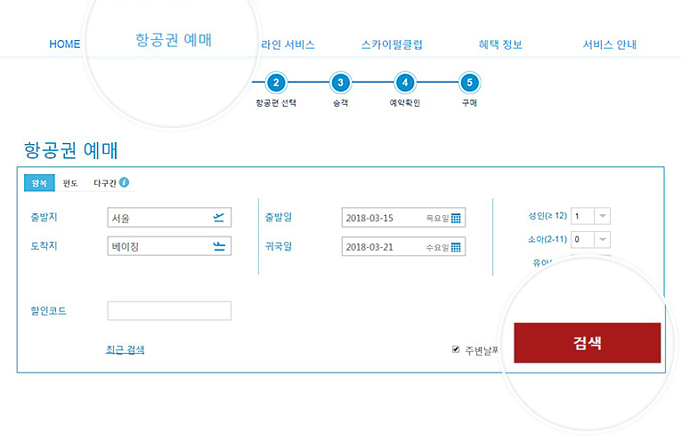 STEP 2. 항공권 예매 페이지 > 항공권 검색