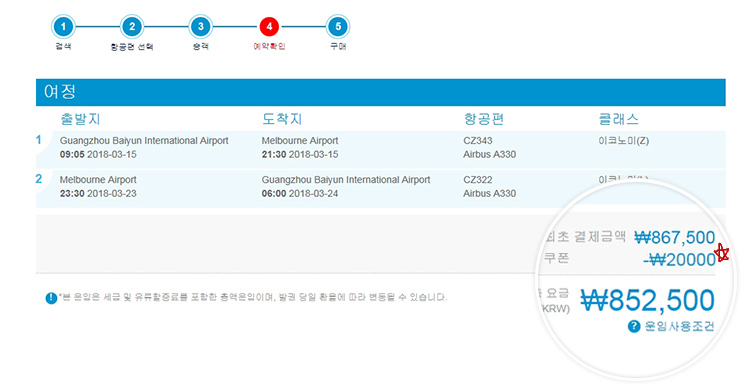 일부 클래스(P,S,O,X,G)/공동운항(코드쉐어) 및 타항공사 포함 항공권/TAX 및 유류할증료에 대한 쿠폰 할인 적용은 불가합니다.
