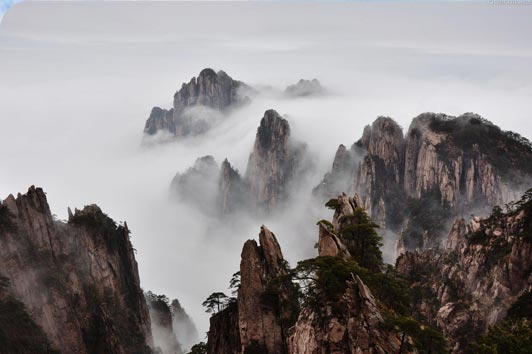 黄山集中国各大名山的美景于一身,尤其以奇松、怪石、云海、温泉"四绝"著称,是大自然造化中的奇迹,历来享有"五岳归来不看山,黄山归来不看岳"的美誉。