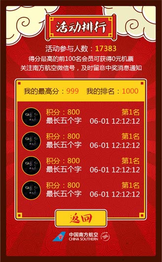 5、南航全体员工不享受中奖特权,更多活动规则详情以活动页面为准。