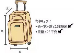 2、每位乘客每段航班最多可购买两件额外行李,其中每件重量不大于23KG,尺寸(三边之和)不大于158cm。