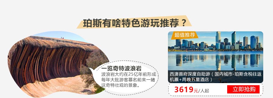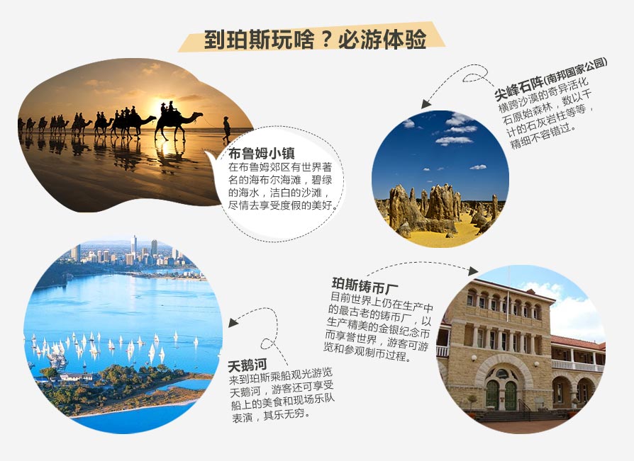 珀斯是西澳州的首府,在整个澳洲珀斯日照时间最长,阳光明媚, 风和日丽,因此被世界各地的旅游者称为“太阳城”和“空气城”。 在珀斯随处可见的还有黑天鹅,珀斯也有“黑天鹅城”之称。