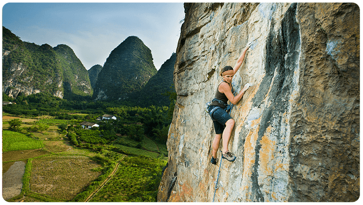 勇敢攀岩的外国女孩