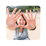 汕头海边开心玩耍的姑娘