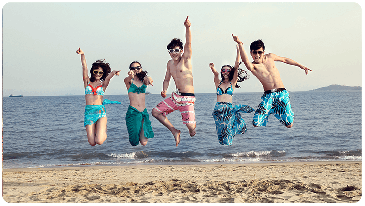 海滩上跳跃的年轻人