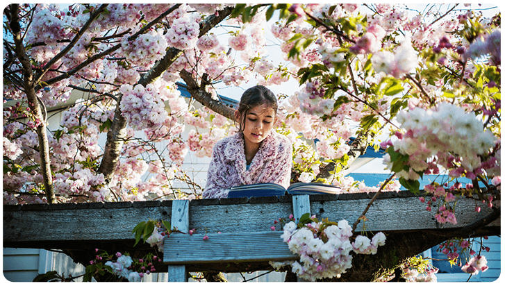 在树下看书的奥克兰女孩儿