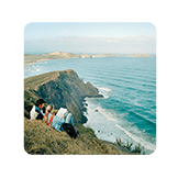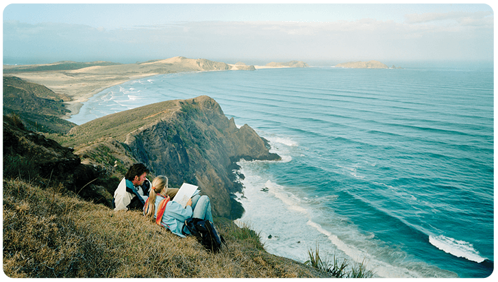 悬崖边欣赏新西兰风光的恋人