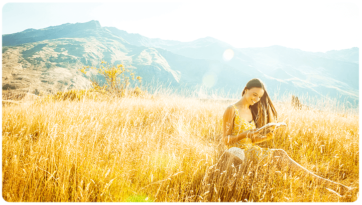 草地上阅读的女郎