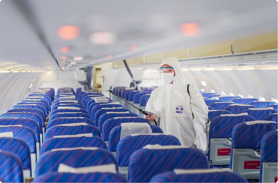 In the air conditioning system of China Southern Airlines' aircrafts, the recirculation system is installed with HEPA (High efficiency particulate air Filter). 99.97% of all bacteria and virus particles will be filtered, and HEPA also has the function of disinfection and sterilization. After each flight- operation, disinfectants must be used to clean the cabin especially the high contact points, such as tray tables, handrails and toilets. We will clean and disinfect the aircraft cabins after every flight.