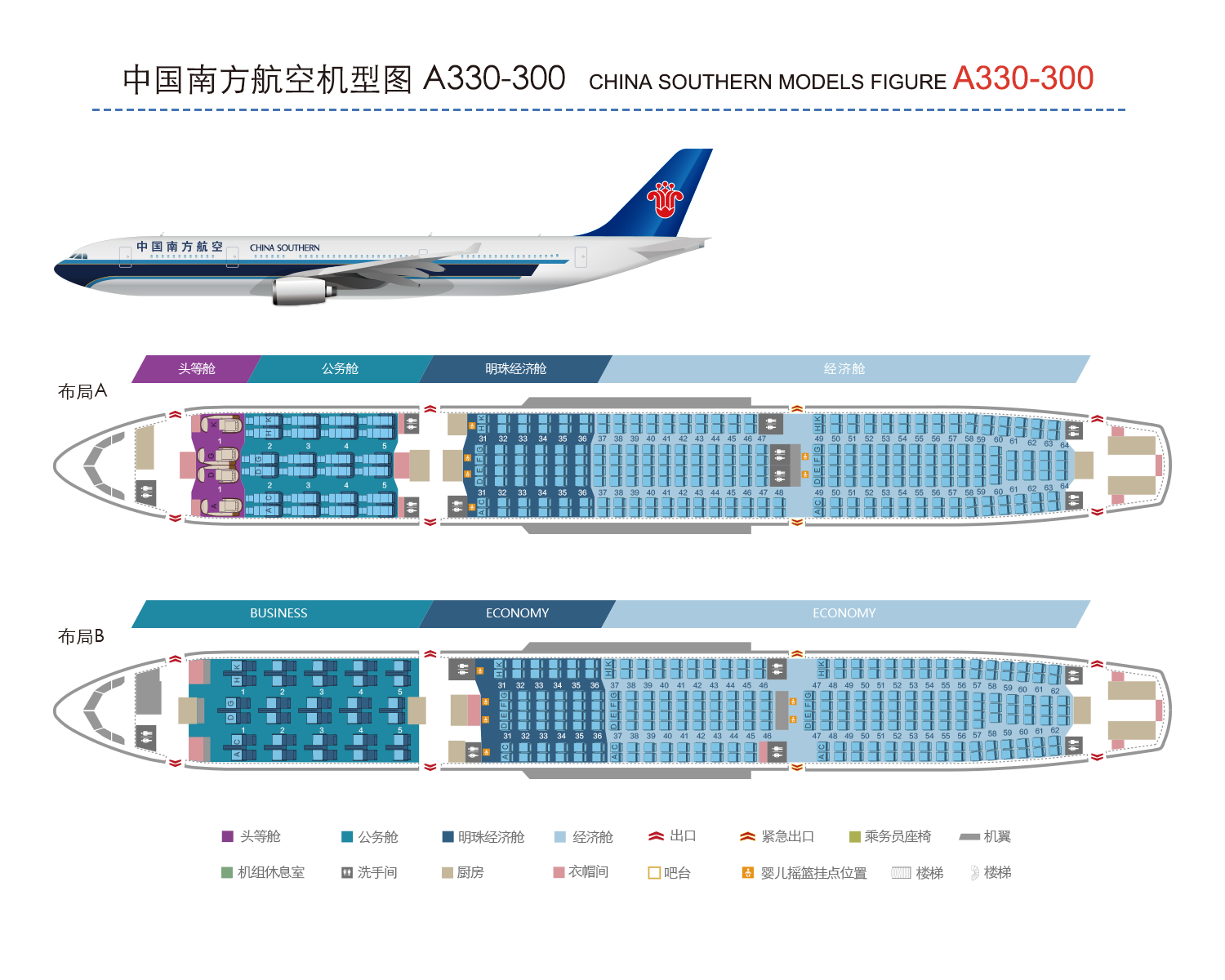 客舱布局及数据仅供参考,请以实际乘机时为准。