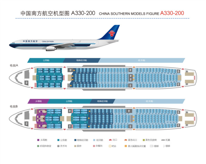 A330-200(3舱,258个座位)