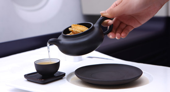 經過專業培訓的精英乘務員伴隨您品味專業地道的紅酒及中國傳統香茗。