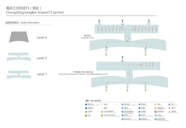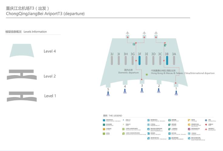 重庆江北国际机场T3A航站楼L4层3F岛(出发3-4号门之间)