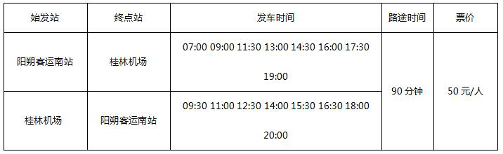 桂林机场民航大巴线路时刻一览表