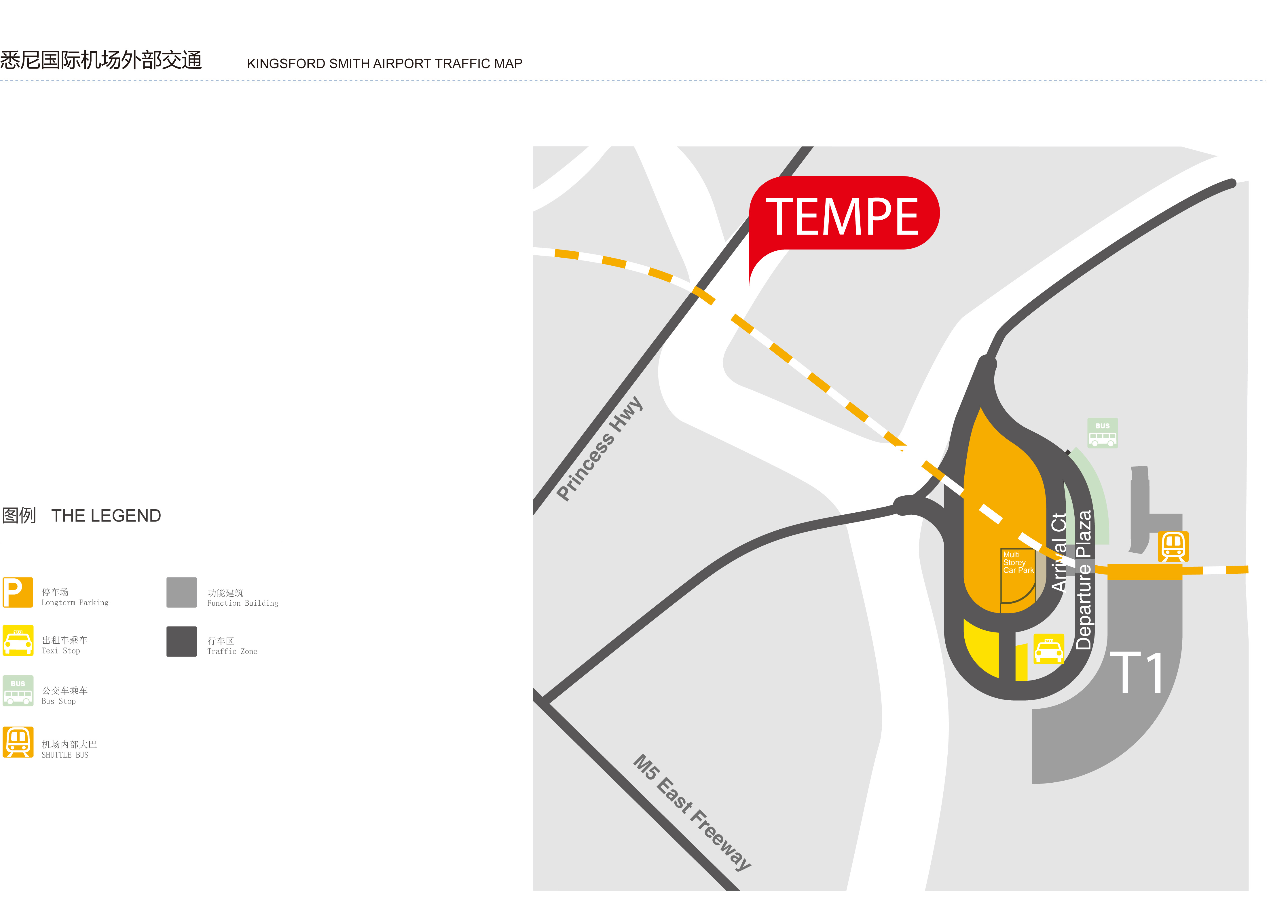 悉尼金斯福德•史密斯机场是澳大利亚最大最繁忙的国际机场,距市中心8公里。机场內设有三个航站楼,其中1号航站楼(T1)为国际航站楼,2号和3号(T2、T3)为国内航站楼。