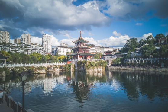位于西南云贵高原的东部,是贵州省省会,也是西部地区重要的交通枢纽、工业基地及商贸旅游服务中心。贵阳因具有最热月平均气温舒适度的优势,荣登“中国避暑之都”,有"上有天堂下有苏杭,气候宜人数贵阳"的美誉。