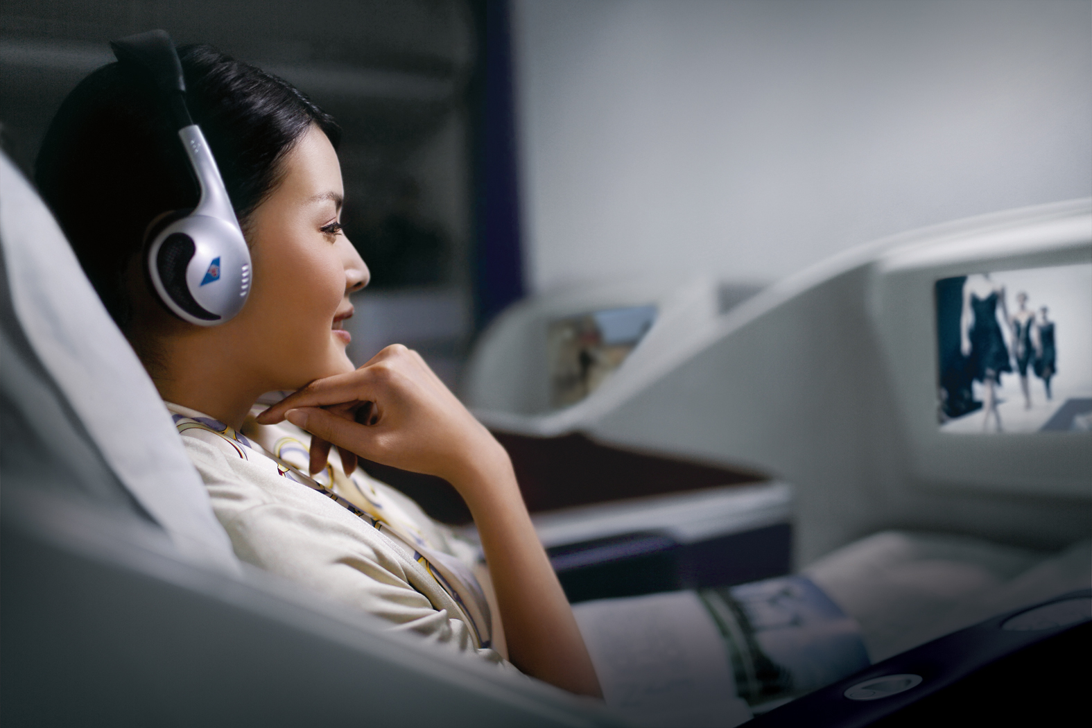 在优雅柔和的灯光中,放平豪华舒适的蚕茧式座椅,无论工作、休息或用餐,都可尊享宽裕、私密、安静的个人世界。