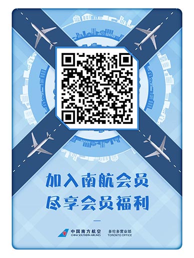 南航会员或购票旅客可联系南航多伦多营业部进行咨询并获取专属激活码: