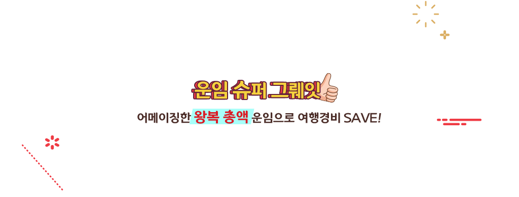 - 상기 운임은 세금 및 유류할증료를 포함한 총액운임이며, 발권 당일 환율에 따라 변동될 수 있습니다.