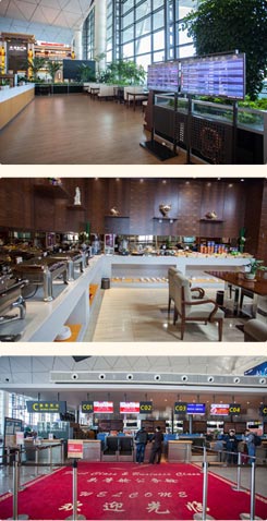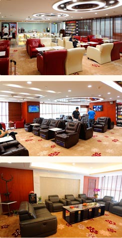 发厅,通过安检线左侧约20米处;休息室分为精英会员区、金银卡/VIP休息