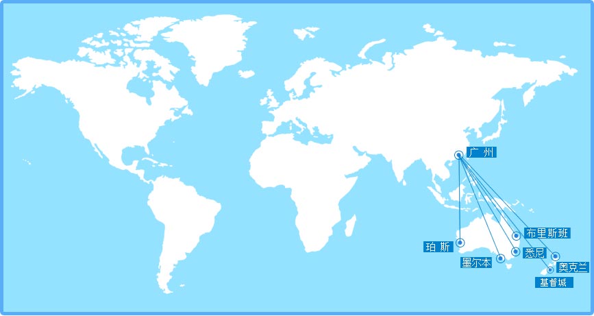 广州-悉尼、广州-墨尔本、广州-布里斯班、广州-珀斯、广州-奥克兰、广州-基督城