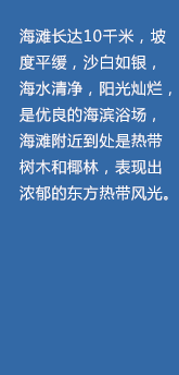 光、沙滩、海鲜名扬天下,被誉为"东方夏威夷",是世界著名的新兴海滨旅游度假胜地。