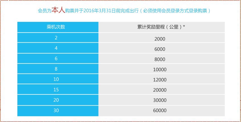活动期内会员为本人购票并出行12次,达到满10次的购票出行的条件,将奖励12,000公里里程。