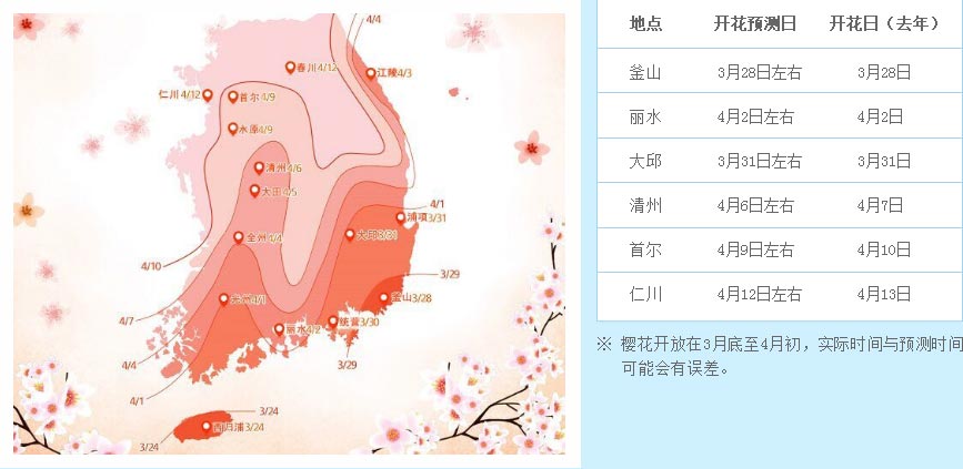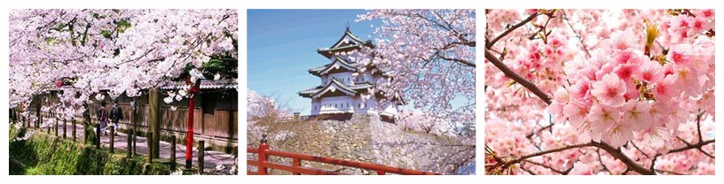 每年3月15日至4月15日是日本的樱花节,樱花由南至北连成一线相继绽放,形成一条由南