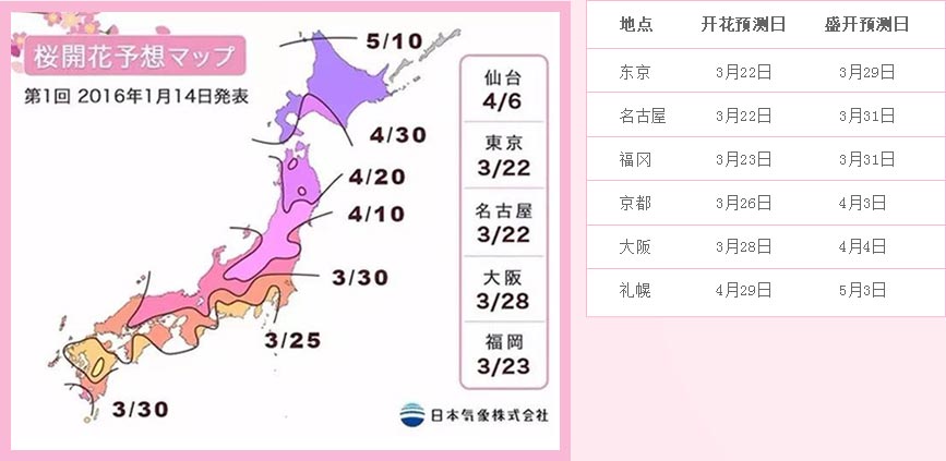 向北推进的"樱花前线"。日本全岛樱花开放至衰败的整个过程就被称为——樱花祭,在东京最大