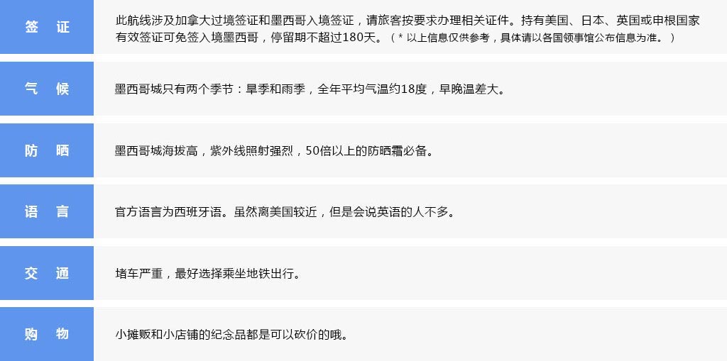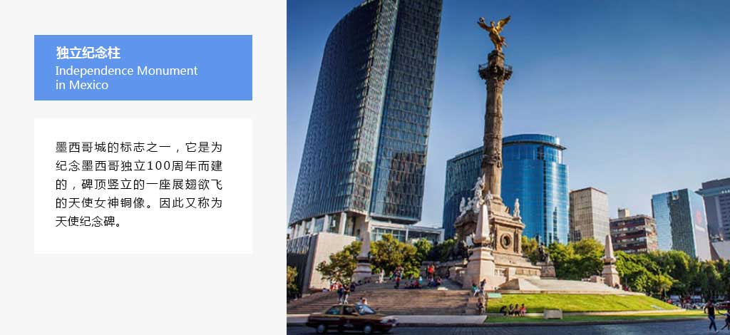 金字塔 - 独立纪念柱 - 宪法广场 -首都大教堂 -国家宫殿 -弗里达•卡洛博物馆 –国家美术馆