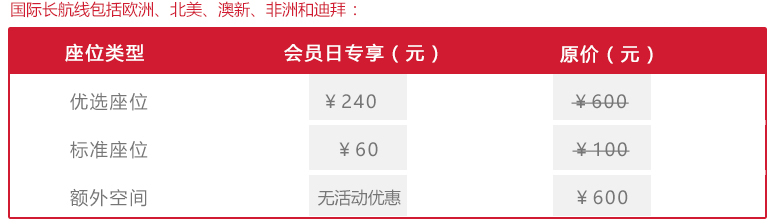 - 2、普通会员可畅享4折起优惠。(*优惠仅针对需要付费的经济舱座位)