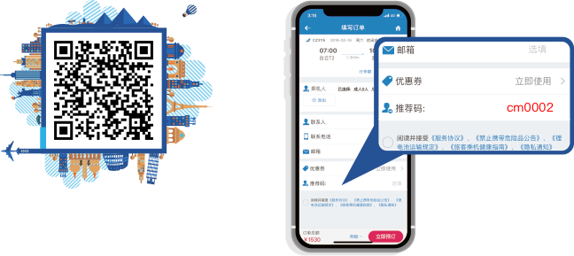 1、机票现金券礼包内含10、20元境内机票现金券。