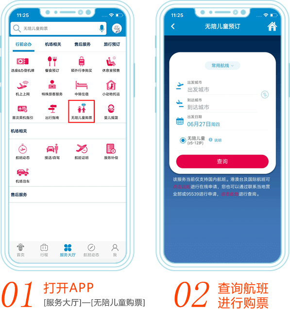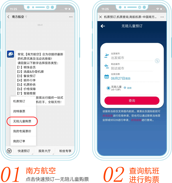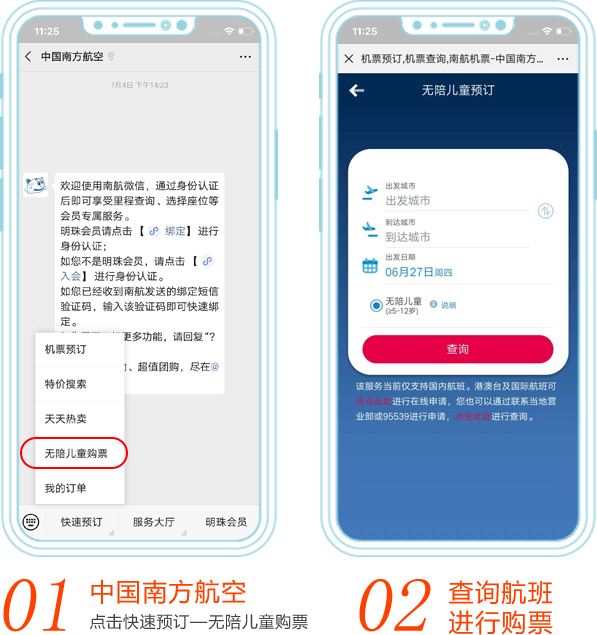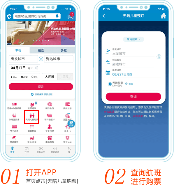 在南航APP、微信公众号上成功购买无陪儿童票,