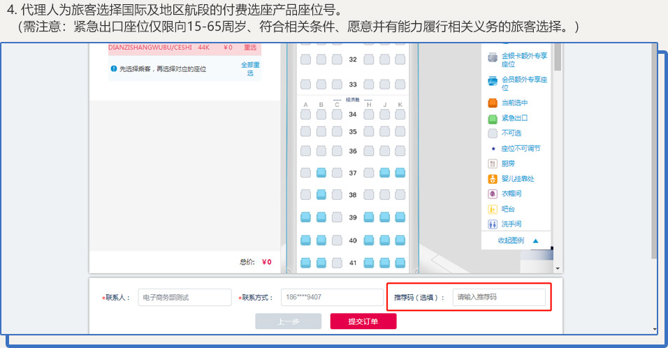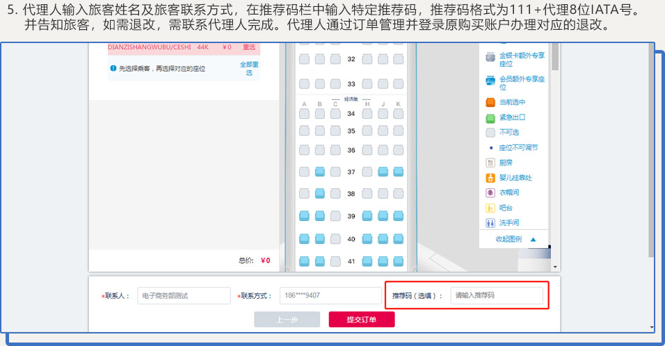 即日起,B2B代理可通过官网销售提前选座、预付费行李、预售休息室、电子发票等各项增值服务,办理流程及入口具体如下,代理人可在订单提交页面上填写结算号信息,以作为推荐量的统计,付费选座办理成功可额外获得付费选座境内后返奖励。