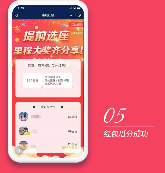 3. 每位用户最多可参与5次好友发起的红包团,但同一好友的红包团只能参与1次。