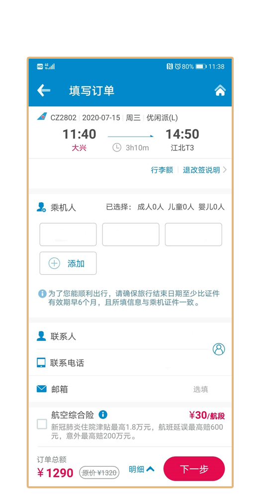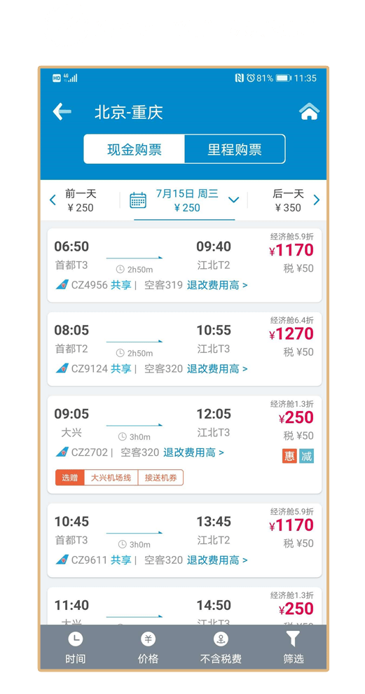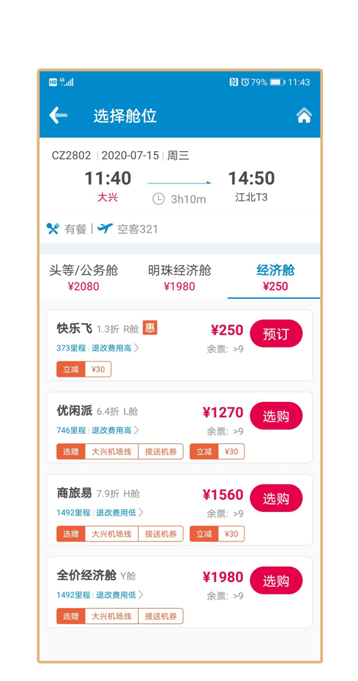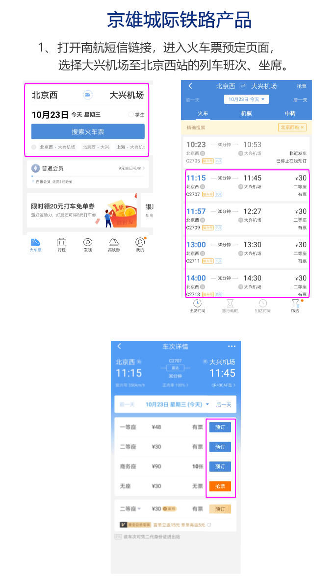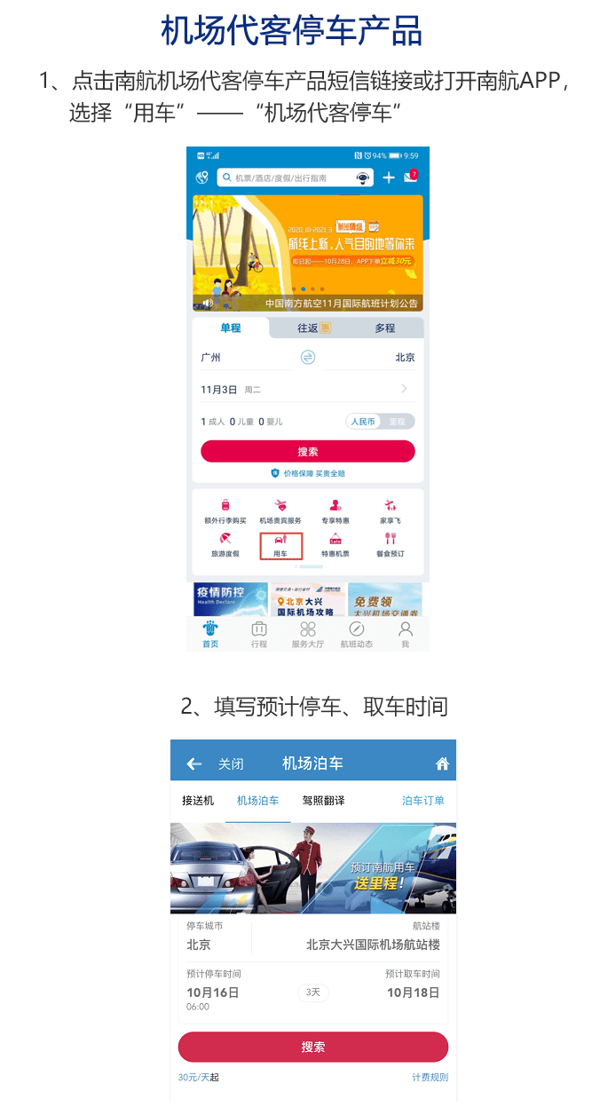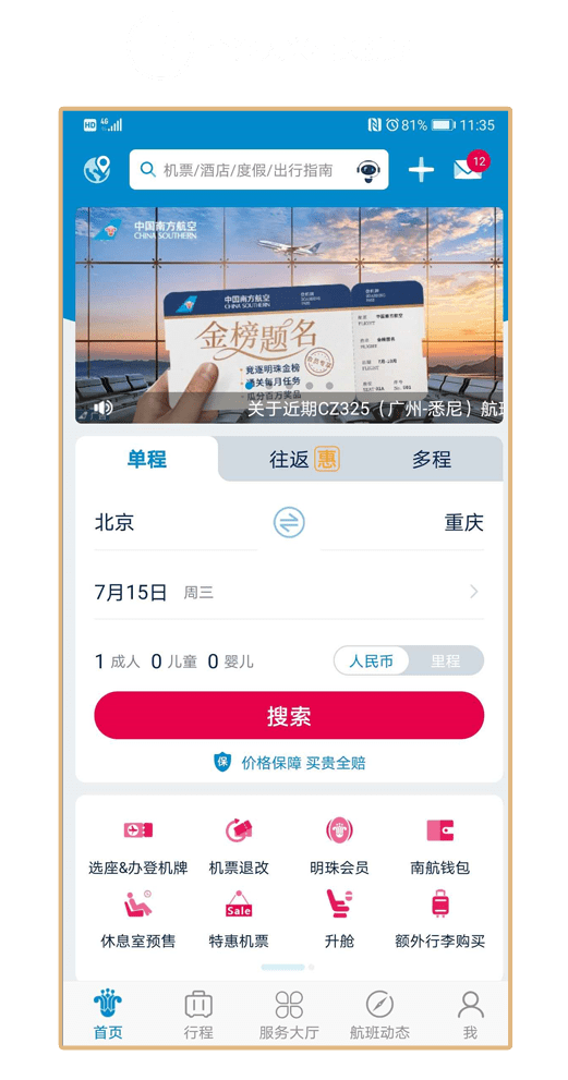 1.打开南航APP,搜索含大兴机场始发/到达的航班;