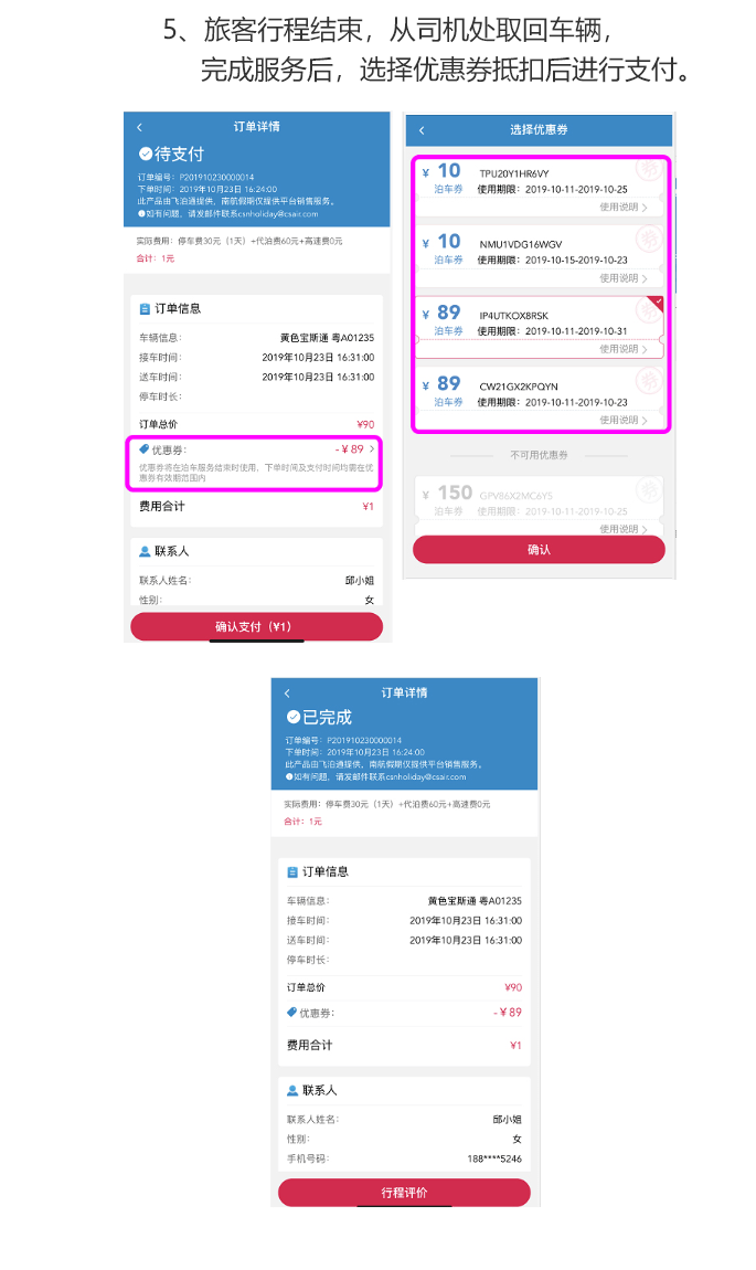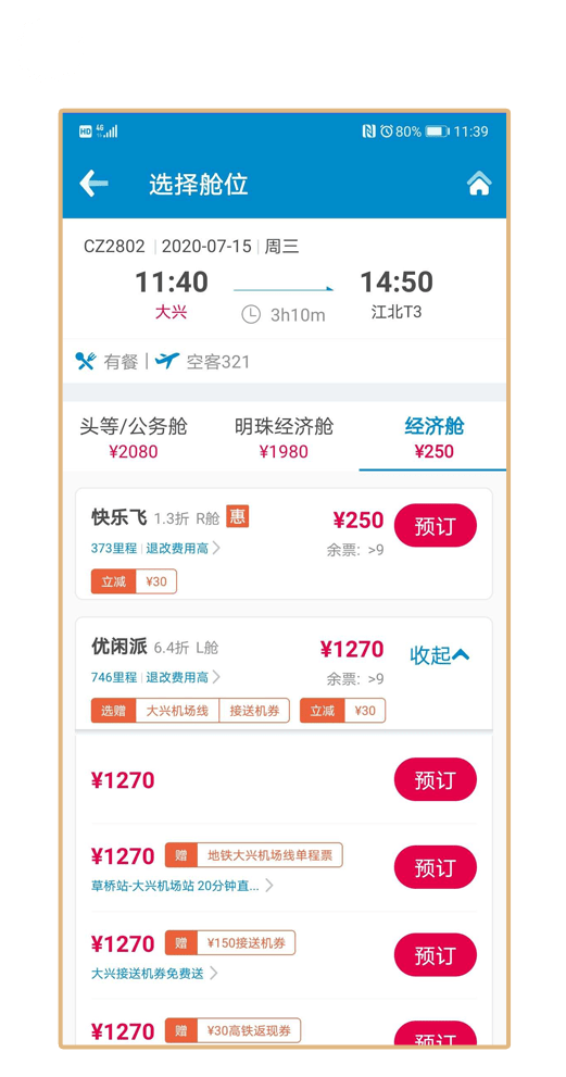 2.选择含交通券标签的机票,进行购买并完成机票支付;