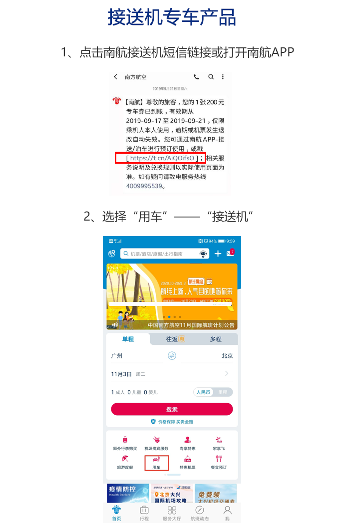 即日起,购买南航大兴机场始发/到达的机票,即可免费领取地面交通券!