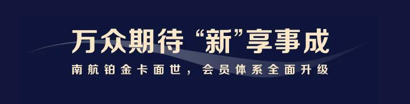 今天我们的会员大家庭迎来了全新成员——南航铂金卡,同时南航会员体系全面升级,助您“新”享事成!
