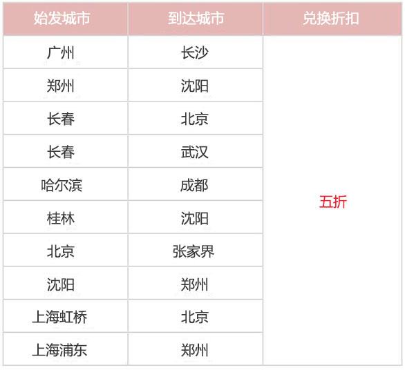只要您兑换2015年10月至12月期间以下航线航班的南航奖励机票,即可享受低至五折的优惠兑换价格。