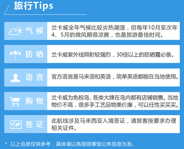 兰卡威位于马六甲海峡,距槟城约112公里,行政隶属于马来西亚的吉打州。兰卡威景色优美,风光旖旎,是资深海岛游爱好者的私藏之选。
