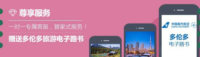 含税往返机票+3晚多伦多酒店+专属客服+电子路书+旅游局官方推荐+免费升级定制服务