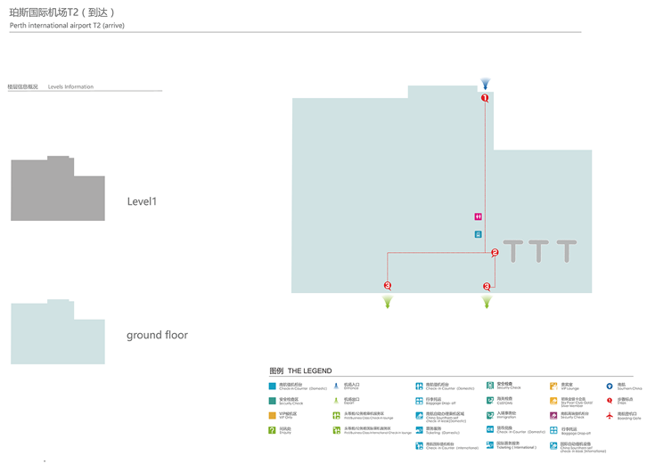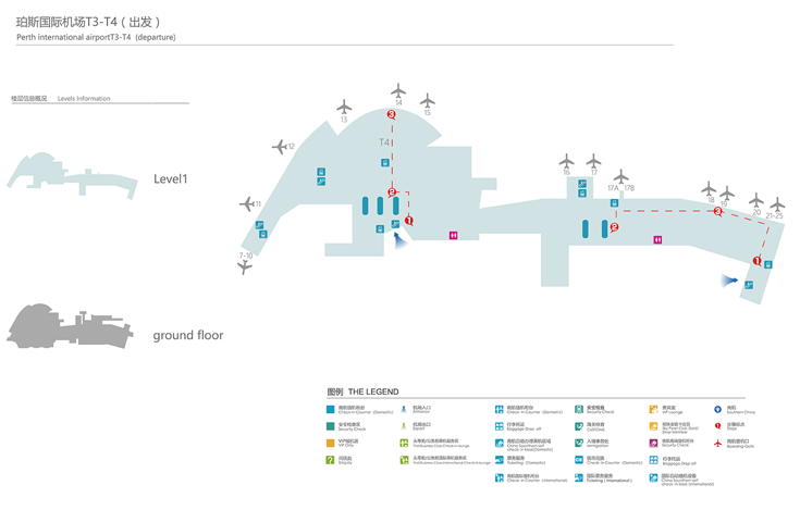 到国际候机楼, 沿着Great Eastern 高速路向东,从 Perth 市中心,右转到Tonkin 高速路和向东南, 在Horrie-Miller Drive左转. 到国内候机楼, Great Eastern 高速路向东,从 Perth 市中心出发在Brearley Avenue右转.