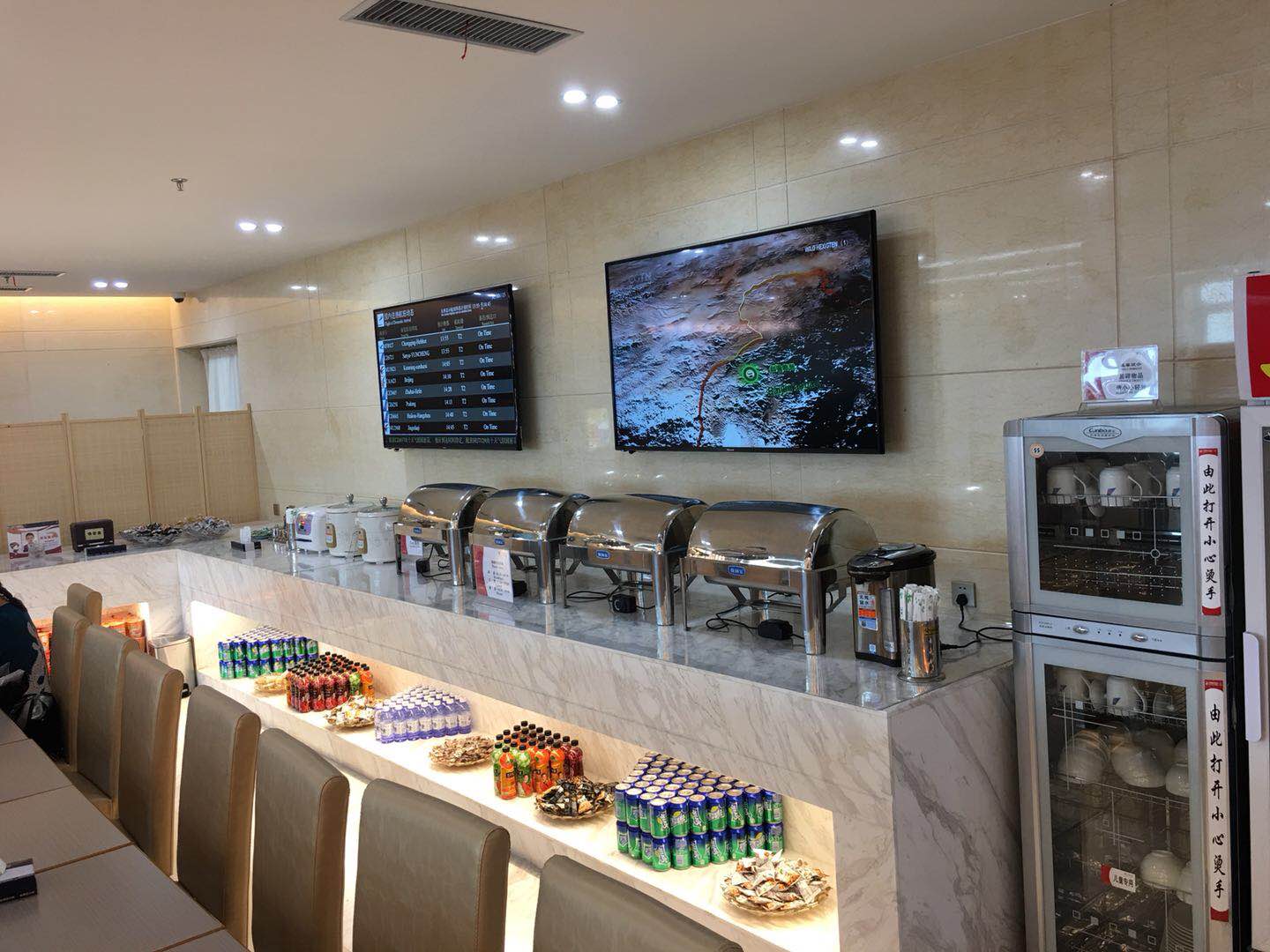 在休息室内,我们为您准备了精美的餐点和水果,特别是哈尔滨的特色食品—红肠,让您从味蕾上更加真实感受到哈尔滨的独特生活气息;我们为您准备了各类饮品、小吃以及种类丰富的书籍、杂志、报纸等读物,愿在咖啡的浓香里,您在舒适的沙发上度过一段慵懒闲适的时光。我们在休息室内设置了商务区,为您免费提供方便快捷的上网电脑服务。愿您可以尽情享受美好的候机时光。