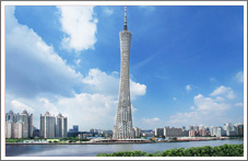 Canton Tower currently comes out first among China's first and world's third highest sightseeing tower due to a total height of 600m.