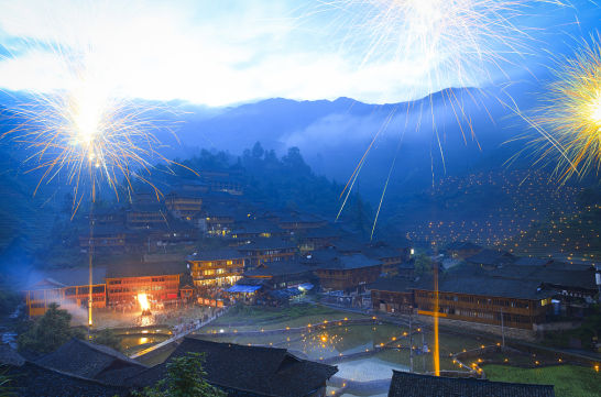 侗族向来有燃放花炮的习俗,寓意为驱赶邪魔和不幸,祈祷人丁兴旺、五谷丰登、恭喜发财。燃放结束后,青年男女会聚在一起载歌载舞,充满节日氛围。