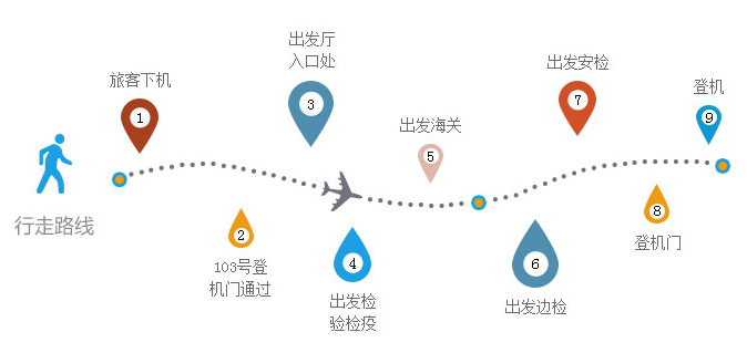 办理乘机手续>托运行李>安全检查>检验检疫>海关申报>办理出境手续>等候登机