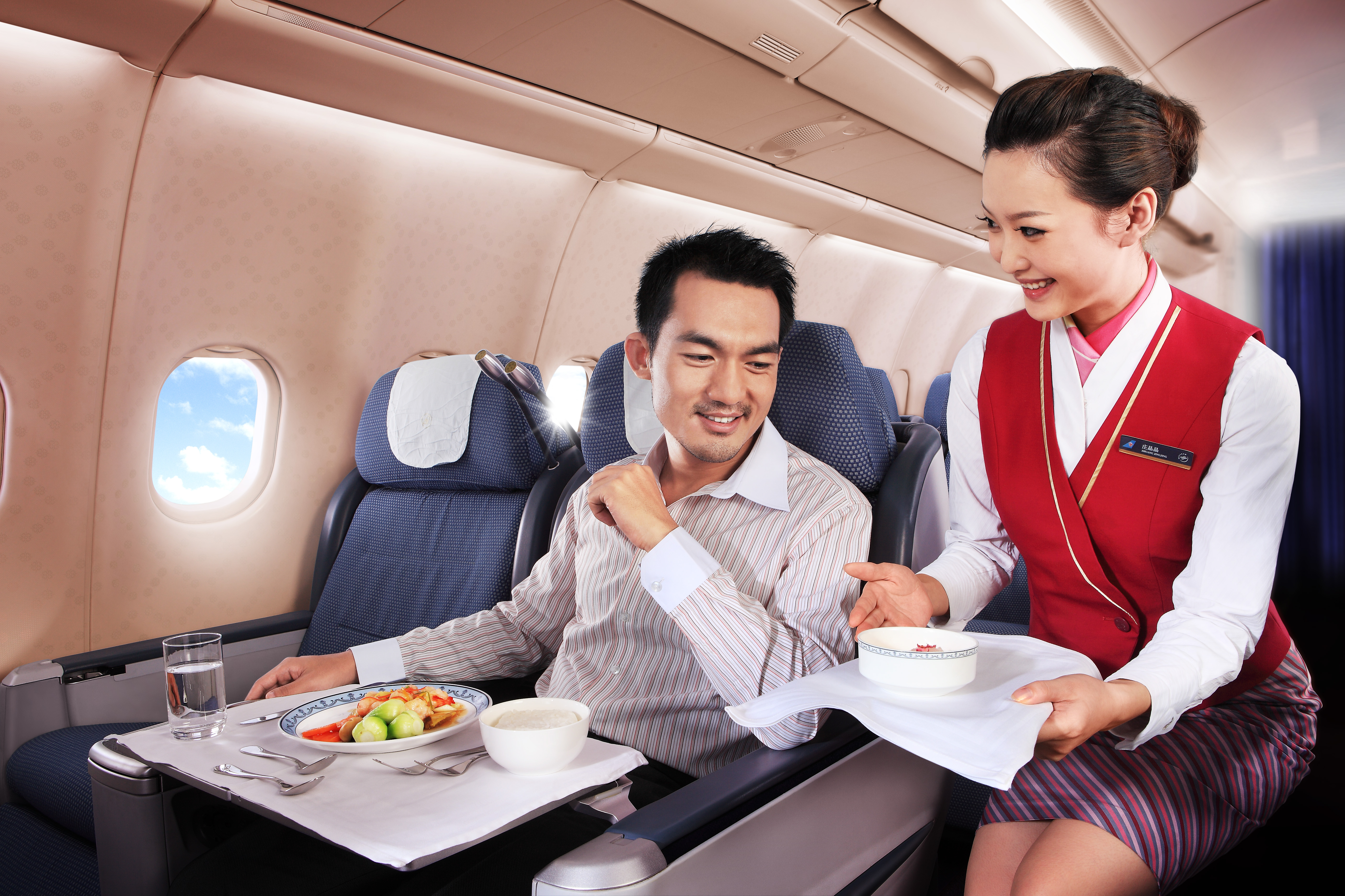 在南航实际承运的部分国内、国际航班上提供头等舱和公务舱免费订餐服务。